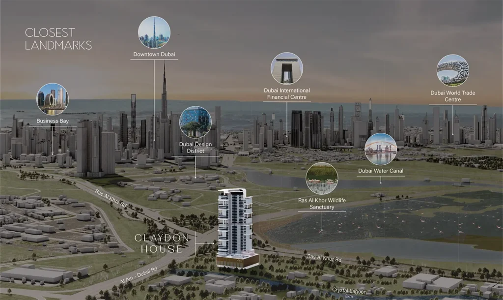 Claydon House at Meydan redefines luxury living, developed by Ellington Properties with premium designed 1, 2, 3, and 4-bedroom apartments in MBR City, Dubai. The high-rise building features a range of design-led residences, including a luxury lifestyle. Positioned to offer sweeping vistas of the Ras Al Khor Wildlife Sanctuary and the iconic Downtown Dubai skyline, residents will enjoy direct access to a crystal-clear lagoon, adding to the allure of this exceptional development.